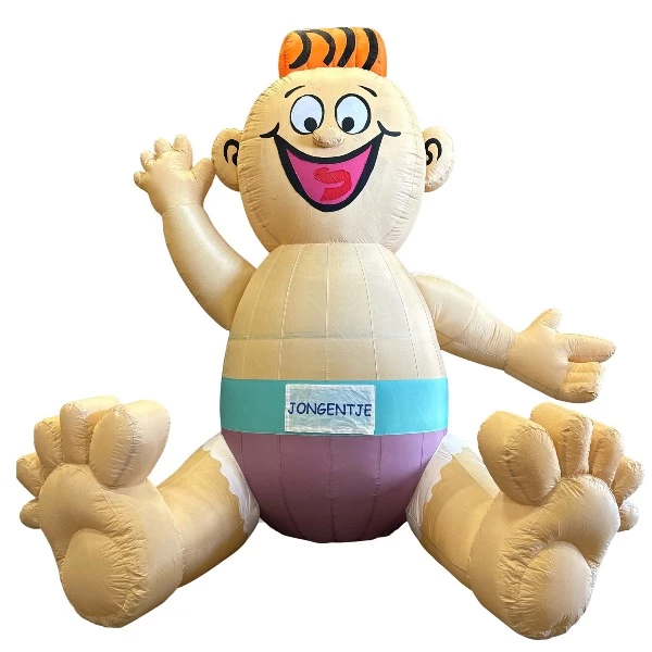 Deze opblaasbare baby mag niet ontbreken bij de geboorte van een jongen. De baby heeft een blauwe cirkel op de buik met de tekst: JONGEN