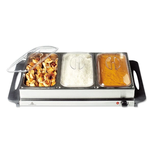 U kunt uw eten in 3 verschillende roestvrijstalen bakken warmhouden.