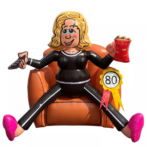 Op zoek naar een opvallende en hilarische verrassing voor de 80 jarige? Onze opblaasbare 80 jaar vrouw bankzitter steelt gegarandeerd de show! Met haar indrukwekkende hoogte van 2,50 meter kan niemand eromheen: dit is hét moment om eens lekker in het zonnetje gezet te worden, helemaal op haar eigen relaxte manier.
