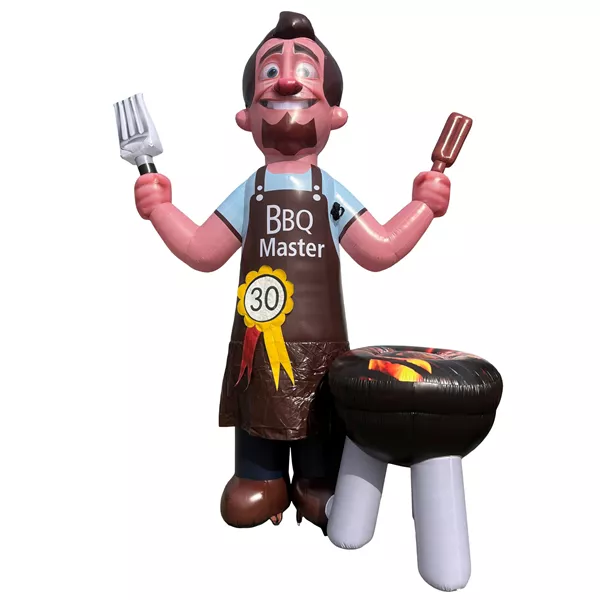 De feestpop man 30 jaar barbecue master is een leuke pop. Er staat duidelijk een verkeersbord met 30 jaar op de buik van deze grillmaster! Deze barbecue grill master is echt een spectaculaire pop van wel 4 meter hoog. De pop is echt DE eye-cather voor iemand in de BBQ wereld!