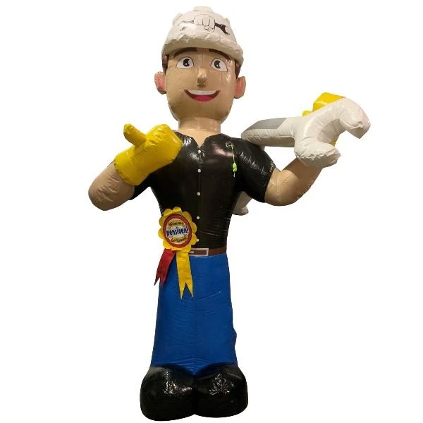 De feestpop bouwvakker is een leuke pop grote pop van 4 meter om te huren. Er staat een duidelijk verkeersbord met PENSIOEN op zijn buik!