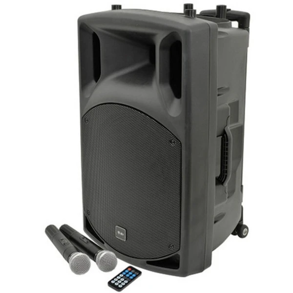 Onze mobiele box heeft een robuuste ABS kunststof behuizing, met een stevig handvat en een uitschuifbare trolley. De box heeft een ingebouwde accu, USB/SD/FM mediaspeler, bluetooth ontvanger, een lijn in en uitgang. Wij leveren er een draadloze microfoon bij. Deze mobiele box wordt vaak gebruikt door zangers, muzikanten, sprekers, sportinstructeurs. Wordt ook vaak gebruikt voor presentaties, de kleine tot middelgrote feestjes en partijen of op locaties waar geen beschikking is tot stroom!