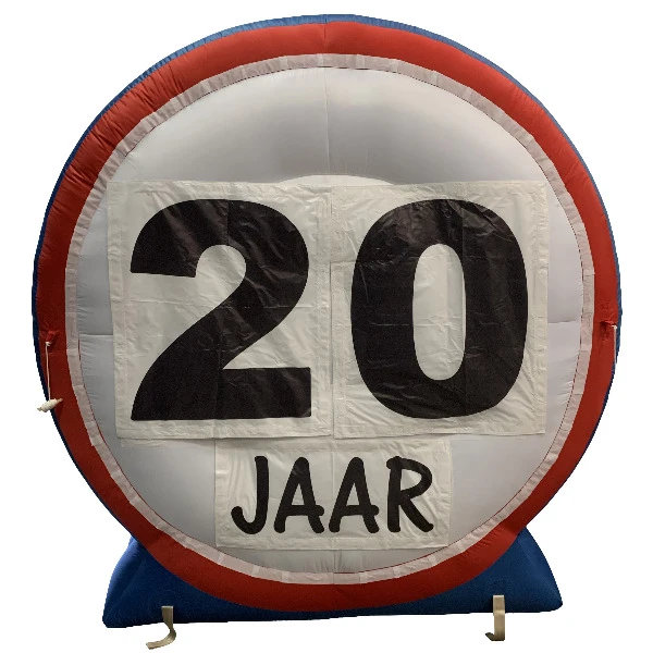 Dit opblaasbare verkeersbord is een leuke toevoeging aan ieder verjaardagsfeest.