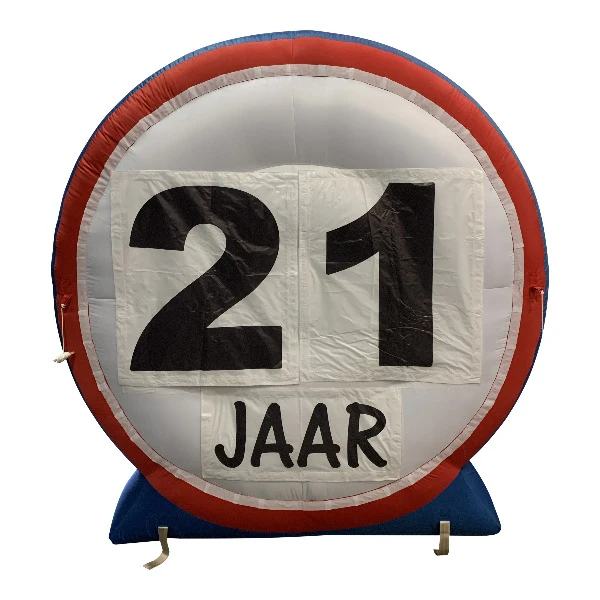 Alles wordt meegeleverd bij het huren van het opblaasbare verkeersbord 21 jaar!