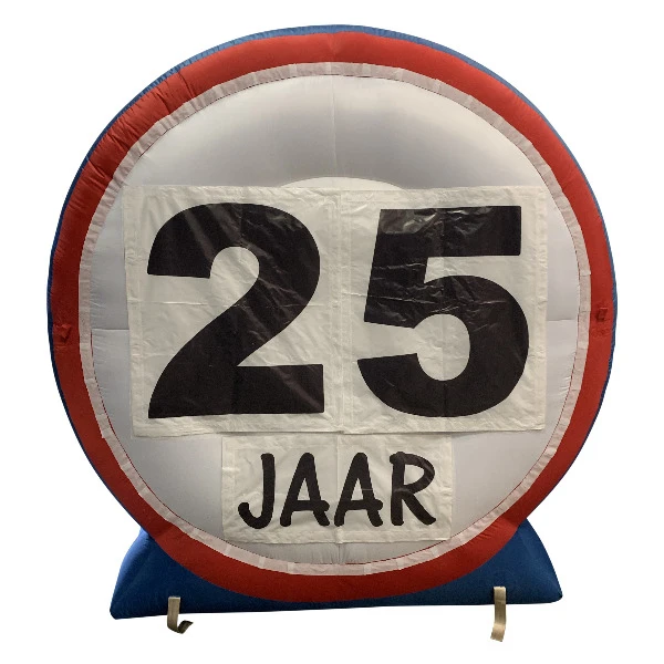 Alles wordt meegeleverd bij het huren van het opblaasbare verkeersbord 25 jaar!
