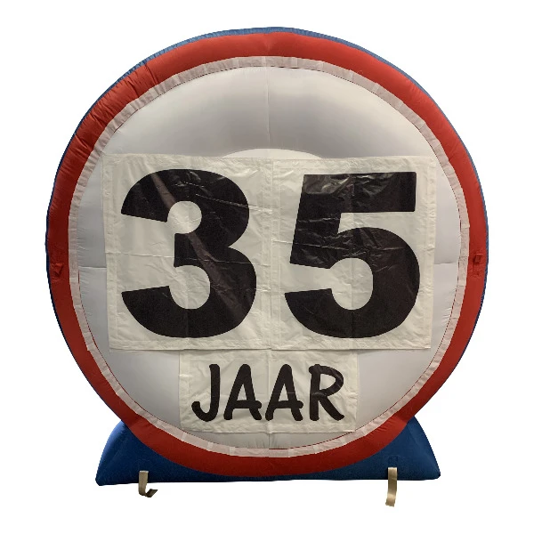 Alles wordt meegeleverd bij het huren van het opblaasbare verkeersbord 35 jaar!