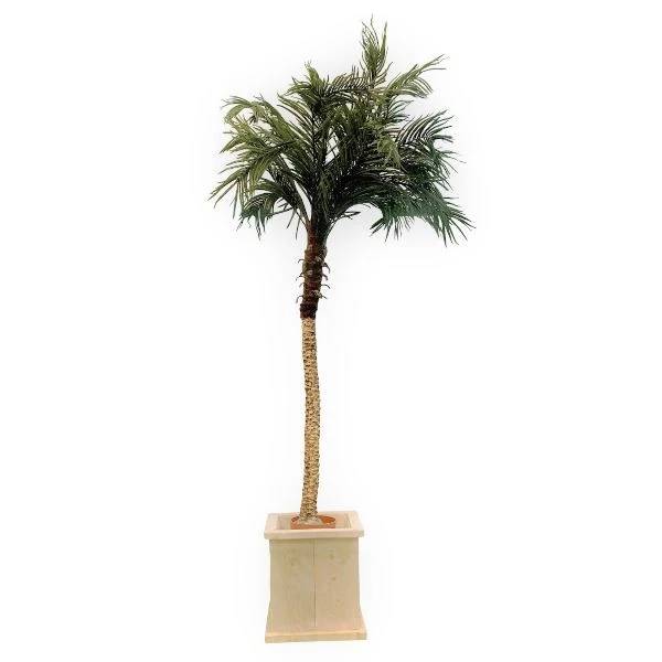 Kleed uw feestlocatie extra aan met deze mooie kunst palmbomen van 210 cm in whitewash houten bak!