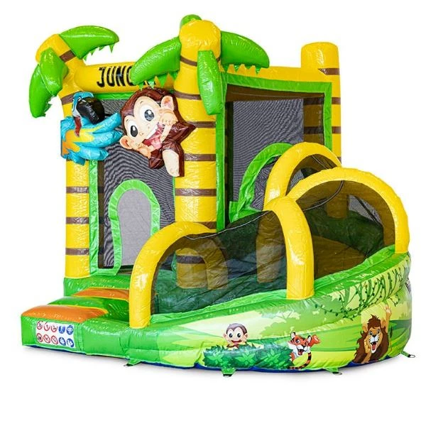 De Mini met Slide Jungle is op te zetten in ongeveer 10 minuten tijd. Door het compacte formaat is dit springkussen ideaal voor een kinderfeestje, evenement of buurtfeest. Je kunt de Mini met Slide ook makkelijk vervoeren doordat deze zo compact is. De inflatable wordt geleverd inclusief blower, verankeringsmateriaal, transportzak en een duidelijke handleiding.