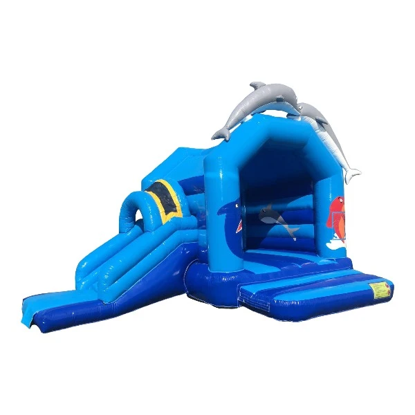 Het springkussen Multifun Dolfijn staat garant voor urenlang speelplezier. Het springkussen heeft mooie opvallende kleurenveel en een coole glijbaan aan de zijkant van het kussen. Dit springkussen is geschikt voor alle leeftijden. De kinderen komen langs allerlei afbeeldingen, wat het thema helemaal compleet maakt. Dit springkussen met het thema dolfijn maakt het feest of uw opening helemaal compleet!