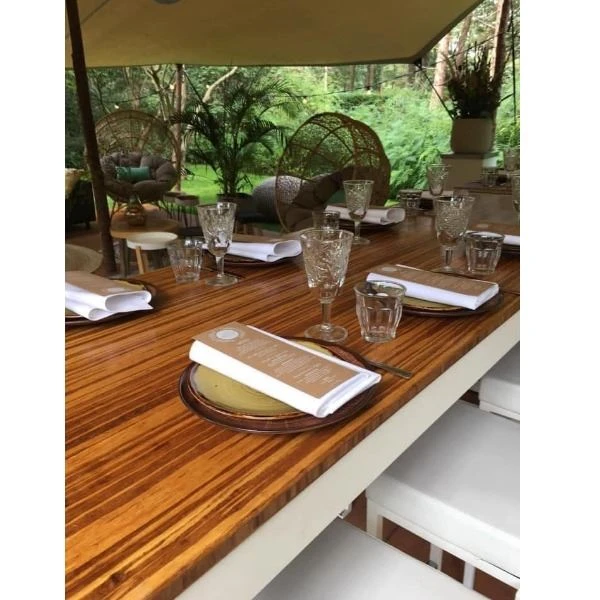 Wilt u uw gasten sfeervol laten staan of zitten aan een luxe strakke statafel? Dan is de flow grande statafel echt iets voor u. De flow grande statafel is een luxe statafel met wit frame en bamboe blad, zonder tafelkleed te gebruiken.