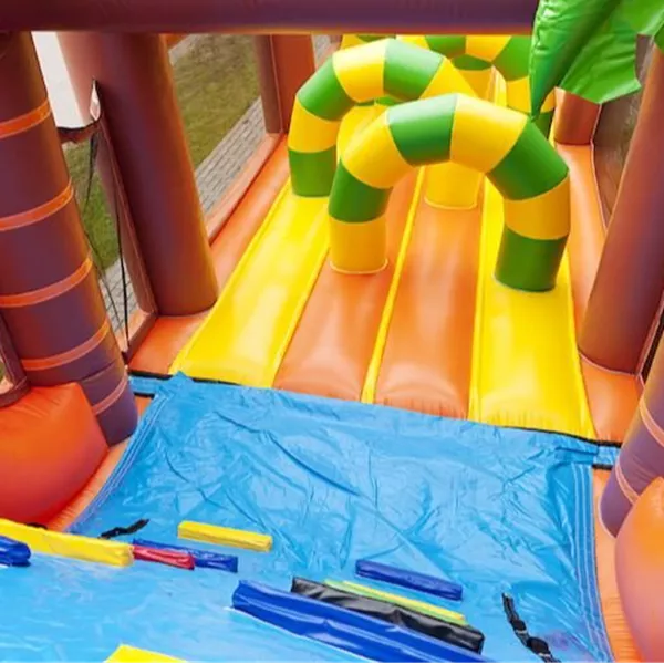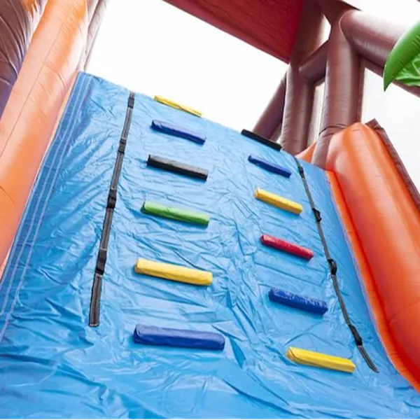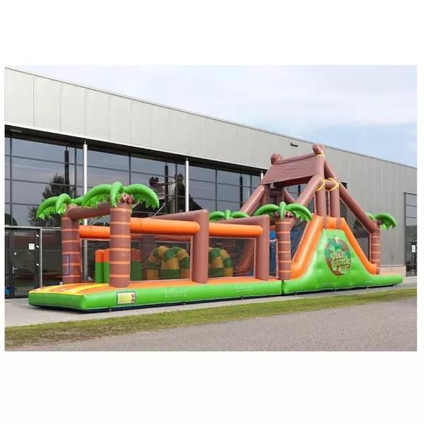 Zin in een spannende dag vol competitie? Dat kan met deze 17 meter lange stormbaan in het Jungle thema! Bezorg kinderen de dag van hun leven met deze unieke stormbaan. Wie van de twee spelers weet het snelste de obstakels te overwinnen, als eerste over de glijbaan te glijden en het einde van de baan te behalen. Spreek met het thema en de kleurrijke objecten jongens en meisjes aan en zorg voor urenlang speelplezier. Garandeer een actieve beleving met maar liefst 7 speelelementen. Zo maak je er een onvergetelijke sportdag of zeskamp van! Deze stormbaan wordt veel gebruikt door verenigingen, bedrijven, scholen en ook voor buurtfeesten.