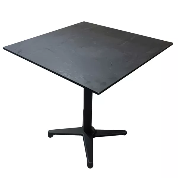- Stevige terrasstatafel met een blad van 70 x 70 cm.